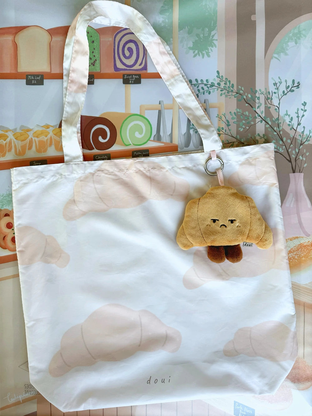 Clip Crossy to your bag and you’ve got a fiery croissant plush with legs that swing as you go. Need an extra bag? Unzip the seam at the back and Crossy unfolds into a roomy tote that carries your haul with ease.